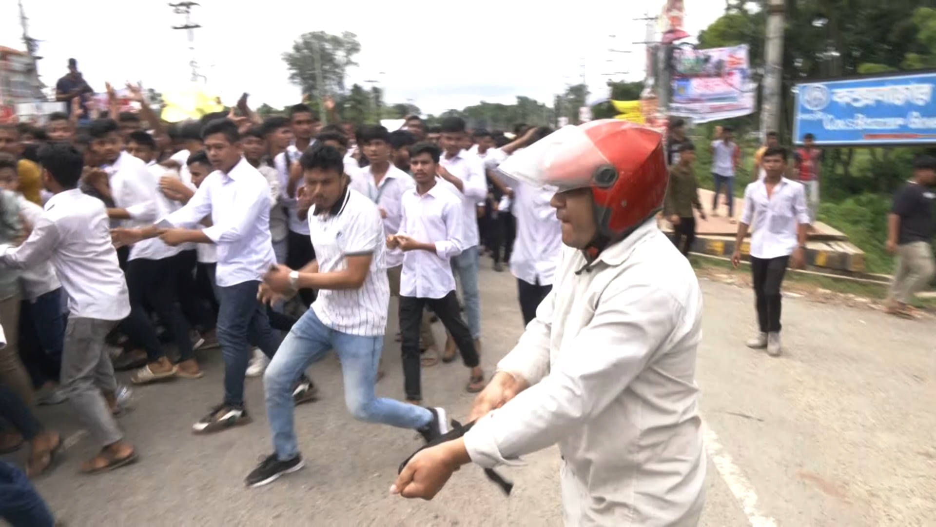 আন্দোলনকারী শিক্ষার্থীরা দাবি করেন, ঢাকা বিশ্ববিদ্যালয়ে আন্দোলনকারী শিক্ষার্থীদের ওপর হামলার প্রতিবাদে তারা সড়কে শান্তিপূর্ণ আন্দোলনে নেমেছিলেন। কিন্তু সরকারি কলেজ ছাত্রলীগের আহ্বায়ক রাজিবুল ইসলাম মোস্তাক হেলমেট পরে এসে তাদেরকে মারধর করে। পুলিশের সামনে তাদের মারধর করা হলেও পুলিশ নীরব থাকে।