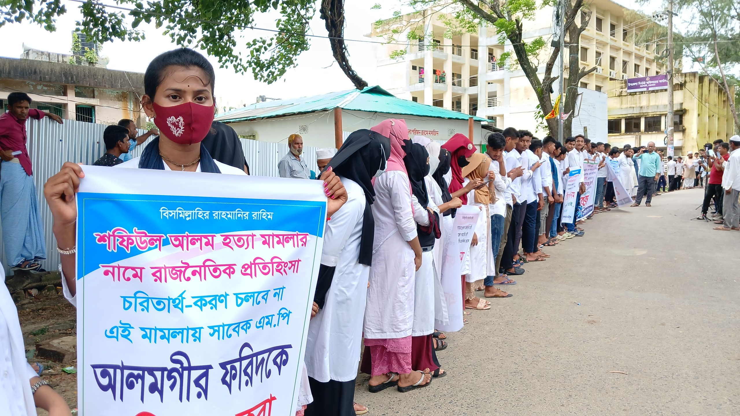 কেন্দ্রীয় বিএনপি নেতা ও সাবেক এমপিকে মামলায় অন্তর্ভুক্ত করায় আলমগীর মোহাম্মদ মাহফুজ উল্লাহর হাতেগড়া শিক্ষা প্রতিষ্ঠান আলমগীর ফরিদ টেকনিক্যাল এন্ড বিজনেস ম্যানেজমেন্ট কলেজ, মহেশখালী আইল্যান্ড হাই স্কুল, বড় মহেশখালী মহিলা দাখিল মাদ্রাসার শিক্ষার্থী, শিক্ষক, কর্মচারীরা মানববন্ধন ও প্রতিবাদ সমাবেশ করে।