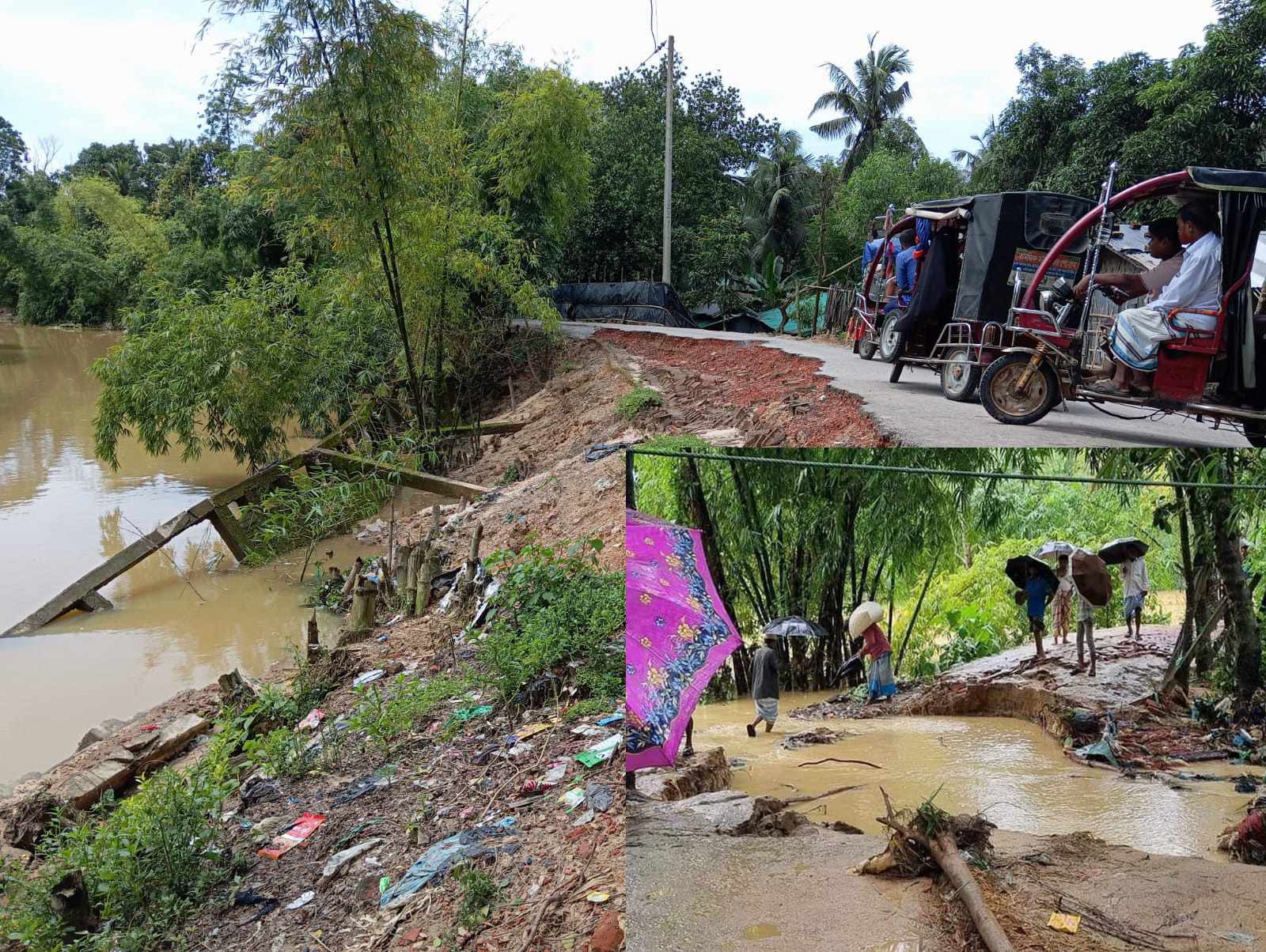 টানা ভারীবর্ষণে উজান থেকে আসা ঢলের পানিতে বিলিন হয়ে সড়কের ভগ্নদশা সৃষ্টি সহ যানচলাচল বন্ধ হয়ে পড়েছে কক্সবাজারের চকরিয়া উপজেলার খুটাখালী ইউনিয়নের বিভিন্ন গ্রামীণ সড়ক। সরেজমিনে গেলে দেখা যায়-খুটাখালী বাজার থেকে হাফেজখানা হয়ে হাজীপাড়া-শান্তিবাজার,ইসলাম বাজার ও নতুন বাজার সড়কটির উত্তর পাড়াস্হ খুটাখালী খালের লাগোয়া কার্পেটিং সড়ক উজান থেকে আসা ঢলের পানিতে সকড়ের দ্বিতীয়াংশ তলিয়ে যানচলাচল বন্ধ হয়ে গেছে।এছাড়াও বাক্কুমের ব্রীজের ঢালাই উঠে গিয়ে বড়-বড় ফুটো হয়।তাছাড়া শান্তিবাজার থেকে হেতালিয়াপাড়া,তলিয়াঘোনার যাতায়াত সড়কটি আমানের বাড়ী সংলগ্ন জায়গাতে ভেঙ্গে ঘরের ছাউনিতে পড়ে,সেখানেও হাঁটাচলা র্দূবিস হয়ে পড়ে।বিশেষ করে খুটাখালী বাজারের মহাসড়কস্হ ব্রীজের পাশ দিয়ে হাজীপাড়া,শান্তি বাজার সড়কটি বেহাল অবস্থা। তেমনিভাবে খুটাখালী বাজার থেকে উত্তর ফুলছড়ি হয়ে লালগোলা বাণিজ্য সড়কটিও ভেঙ্গে যানচলাচল সহ হাঁটাচলা চরম র্দূভোগে পরিণত হয়েছে। খুটাখালী বাজার থেকে পূর্বপাড়া হয়ে পিয়াইজ্যাকাটা-হরিখোলা সড়কের গ্রামীণ টাওয়ার সামনে খালের ঢলের পানিতে ভেঙ্গে গেছে।একই সড়কের মাওলানা আবুল ফজল হুজুরের বাড়ীর সামনে খালের লাগোয়া সড়কটি পানিতে তলিয়ে গিয়ে যানচলাচল বন্ধ সহ হাঁটাচলাও মুসকিল হয়ে পড়েছে।ফলে সবক'টি দিয়ে স্কুল,মাদ্রাসা,কলেজে পড়ুয়া শিক্ষার্থী,প্রসূতি,বয়োবৃদ্ধ সহ সাধারণ পথচারী ও ত্রি-হুইলার যানচলাচল সীমাহীন র্দূভোগ,র্দূদশা সৃষ্টি হয়। এছাড়াও ছোট-বড় প্রত্যক সড়কে খানা-খন্দক সৃষ্টি হয়েছে। এবিষয়ে খুটাখালীর চেয়ারম্যান মাওলানা আব্দুর রহমান বলেন-অতিভারী বৃষ্টির ফলে জনবহুল সড়কগুলো ভেঙ্গে গেছে।এই কারণে যানচলাচল বন্ধ সহ হাঁটাচলাতে চরম র্দূভোগ পোহাতে হচ্ছে।তাই আমি ছোট ত্রি-হুইলার যানচলাচল সহ হাঁটাচলা স্বাভাবিক রাখতে আপদকালীন হলেও সড়ক মেরামতের জন্য উপজেলা নির্বাহী কর্মকর্তাকে জানিয়েছি।ভারীবর্ষণ শেষ হলে দ্রুত মেরামতের কাজ চলবে বলে জানান তিনি।