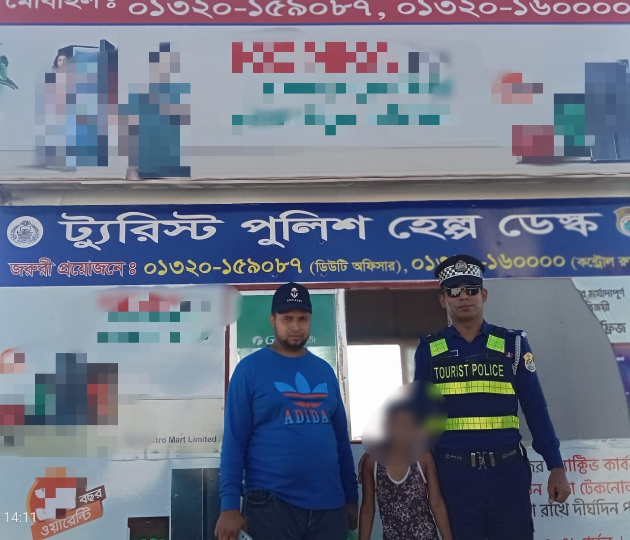 হারিয়ে যাওয়া দুই শিশুকে উদ্ধার করে পিতামাতার কাছে ফিরিয়ে দিল কক্সবাজার ট্যুরিস্ট পুলিশ
