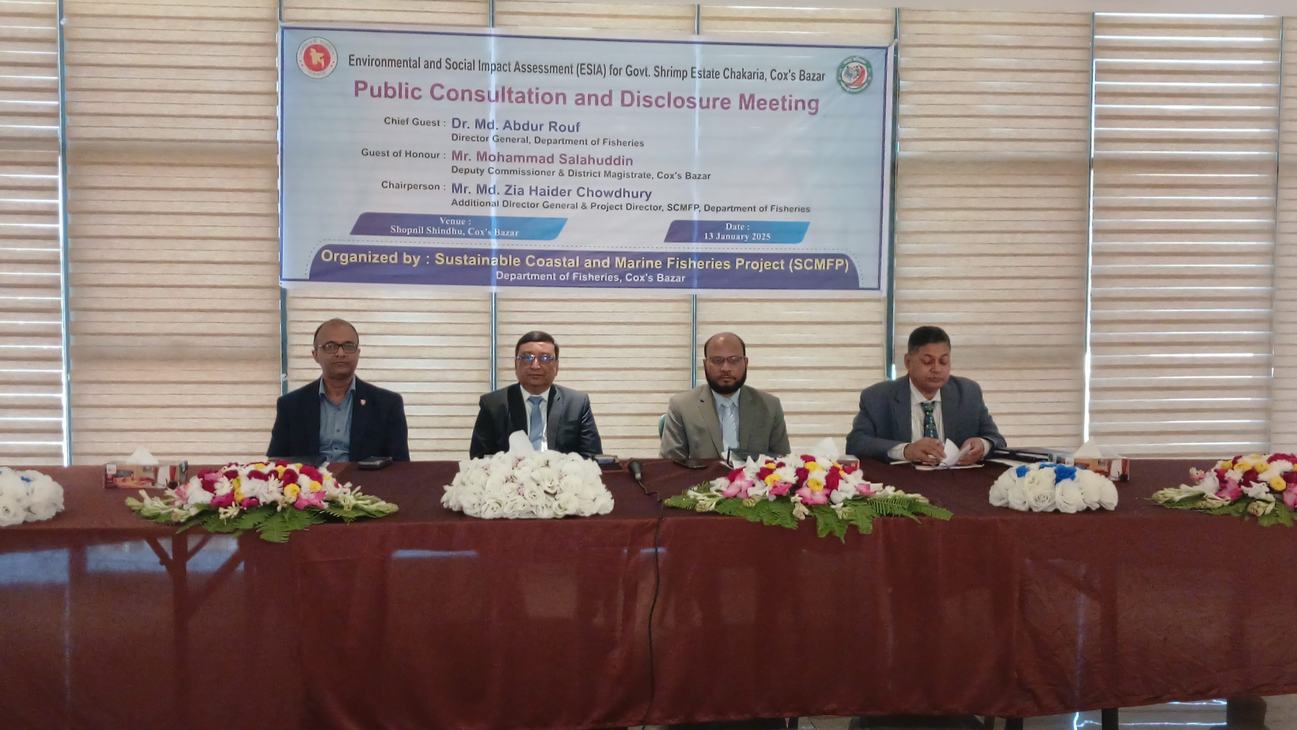 মৎস্য অধিদপ্তরের অতিরিক্ত মহাপরিচালক ও প্রকল্প পরিচালক মো: জিয়া হায়দার চৌধুরীর সভাপতিত্বে অনুষ্ঠিত সভায় বিশেষ অতিথি ছিলেন জেলা প্রশাসক মোহাম্মদ সালাহউদ্দিন।