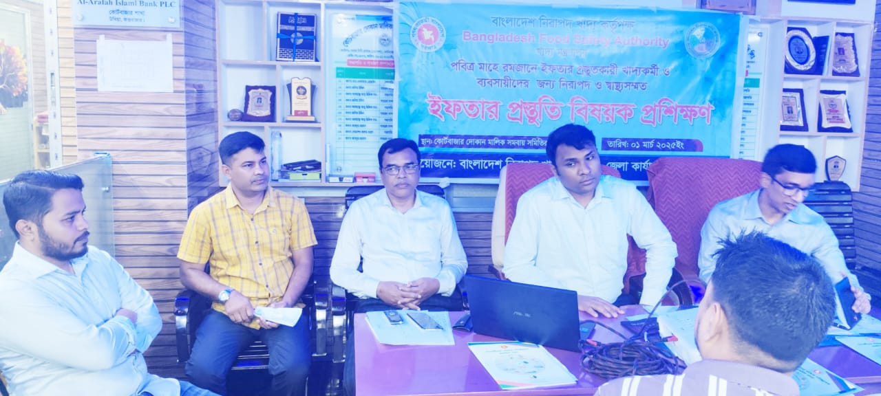 শনিবার(১ মার্চ) সকাল সাড়ে ১১টায় উখিয়ার কোর্টবাজার দোকান মালিক সমবায় সমিতির কার্যালয়ে ব্যবসায়ীদের জন্য নিরাপদ ও স্বাস্থ্যসম্মত ইফতার প্রস্তুত প্রশিক্ষণে আলোচনা করেন ভোক্তা অধিকার সংরক্ষণ অধিদপ্তর কক্সবাজারে সহকারী পরিচালক হাসান আল মারুফ। প্রধান প্রশিক্ষক ছিলেন কক্সবাজার জেলা নিরাপদ খাদ্য পরিদর্শক নাজমুল ইসলাম। প্রশিক্ষণে কোর্টবাজার স্টেশনের হোটেল- রেস্টুরেন্টের ব্যবসায়ী, ফল বিক্রেতা, কাঁচাবাজারের ব্যবসায়ী সহ ইফতার প্রস্তুত ও বিক্রয়ের সাথে জড়িত ব্যবসায়ীবৃন্দ উপস্থিত ছিলেন। প্রশিক্ষণের শুরুতে স্বাগত বক্তব্য রাখেন নিরাপদ খাদ্য পরিদর্শক নুরুল আলম।