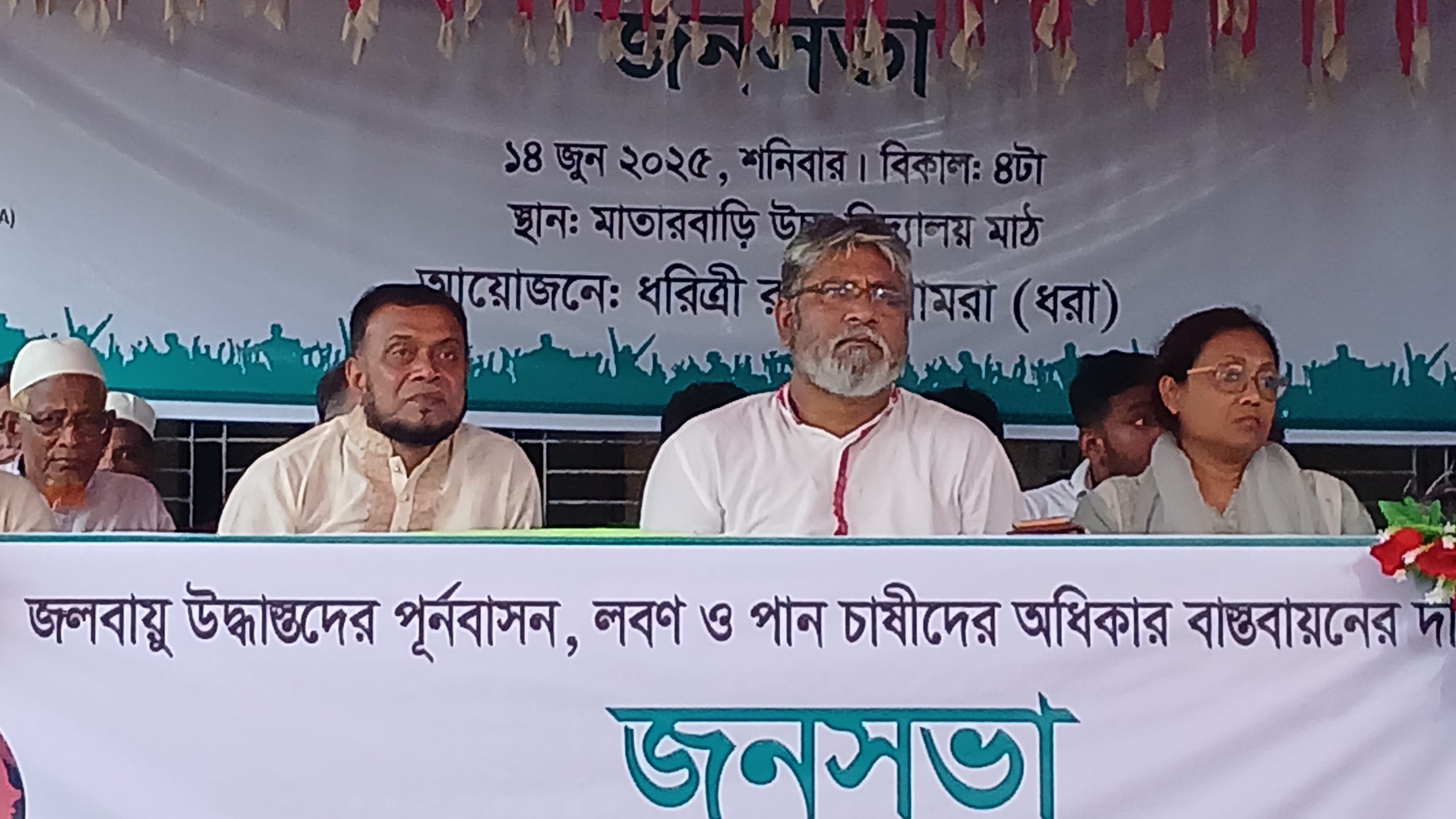 জলবায়ু উদ্বাস্তুদের পূর্ণবাসন লবণ ও পানচাষীদের অধিকার বাস্তবায়নের দাবিতে কক্সবাজারের মহেশখালীর মাতারবাড়ি উচ্চ বিদ্যালয় মাঠে আয়োজিত জনসভায় বক্তারা বলেছেন, শিল্পায়নের নামে লবণ চাষীদের উদ্বাস্ত করার ষড়যন্ত্র চলছে। লবণ চাষের জমিতে শিল্পায়নের মাধ্যমে এই চাষকে বাংলাদেশ থেকে চিরতরে উৎখাতের ষড়যন্ত্র চলছে। শুরু হয়েছে লবণ আমদানির ষড়যন্ত্র। পান চাষিরা ন্যায্য মূল্য পাচ্ছে না। অপরদিকে পরিবেশ ধ্বংস করে একের পর এক শিল্পায়ন হচ্ছে। তাই পরিবেশ প্রতিবেশ রক্ষায় ও লবণ ও পান চাষীদের উদ্বাস্ত করার ষড়যন্ত্র কোনভাবেই বাস্তবায়ন করতে দেবে না এদেশের জনগণ। বাংলাদেশের একমাত্র লবণ উৎপাদন হচ্ছে কক্সবাজারে, কিন্তু সেই লবণ উৎপাদনের জমিগুলো শিল্পায়নের নামে কেড়ে নেওয়া হচ্ছে।এতে করে প্রান্তিক জনগোষ্ঠী উদ্বাস্ত হওয়ার পথে।