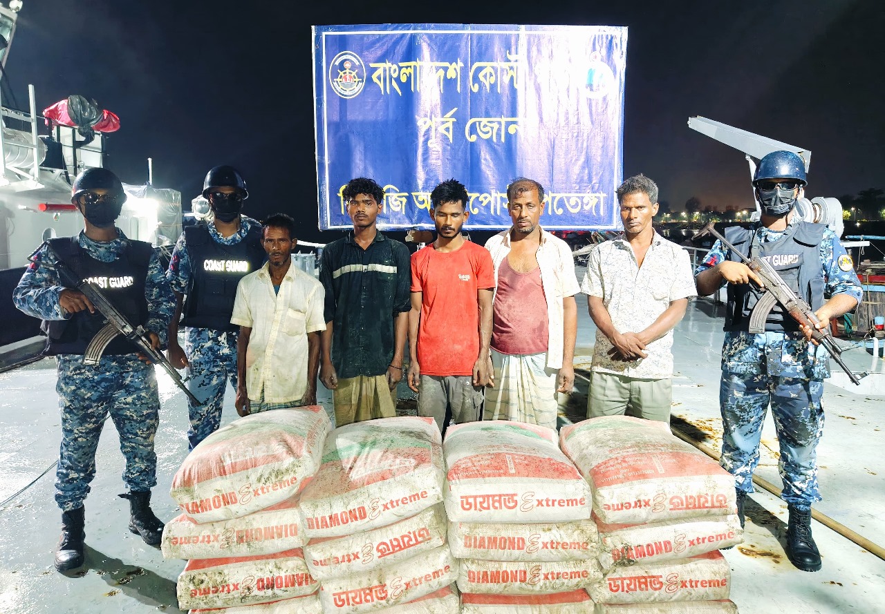 ৫০ বস্তা সিমেন্টসহ ৫ জন পাচারকারীকে আটক করেছে কোস্টগার্ড