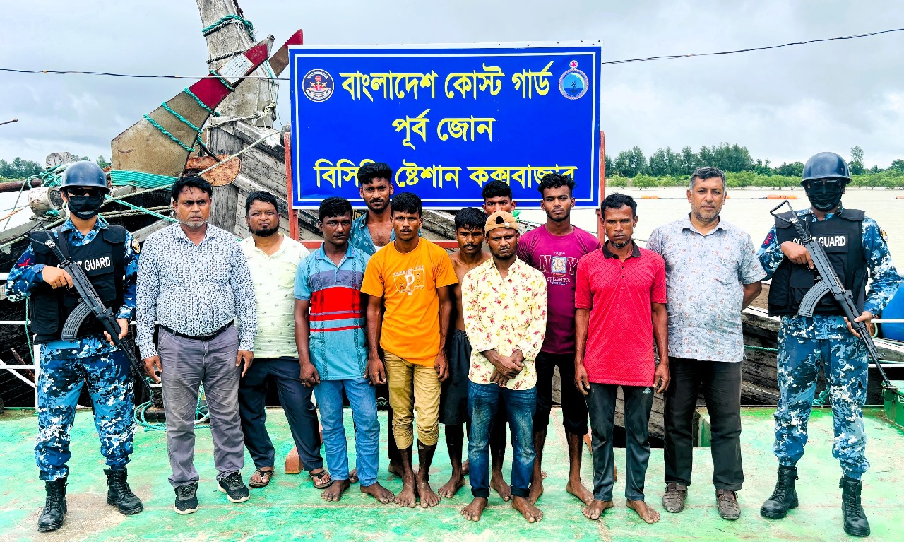 কক্সবাজারে ১ টি অবৈধ আর্টিসনাল ট্রলিং বোটসহ ৯ জন জেলেকে আটক করেছে কোস্ট গার্ড।