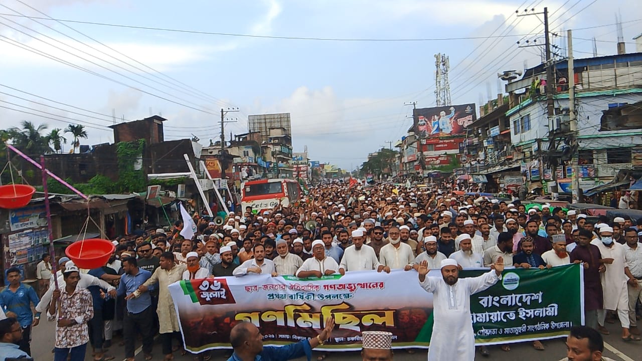 ঐতিহাসিক জুলাই অভ্যুত্থানের প্রথম বার্ষিকী উপলক্ষে বাংলাদেশ জামায়াতে ইসলামী চকরিয়া উপজেলা, পৌরসভা ও মাতামুহুরি সাংগঠনিক উপজেলা শাখার যৌথ উদ্যোগে বিশাল গণমিছিল অনুষ্ঠিত হয়েছে । সোমবার (৪ আগষ্ট) বিকাল সাড়ে ৫টায় চকরিয়া পৌর বাসটার্মিনাল থেকে শুরু করে চট্টগ্রাম-কক্সবাজার মহাসড়কের চকরিয়া শহর এলাকা প্রদক্ষিণ করে জনতা শপিং সেন্টার চত্বরে এক বিশাল সমাবেশে মিলিত হয়।