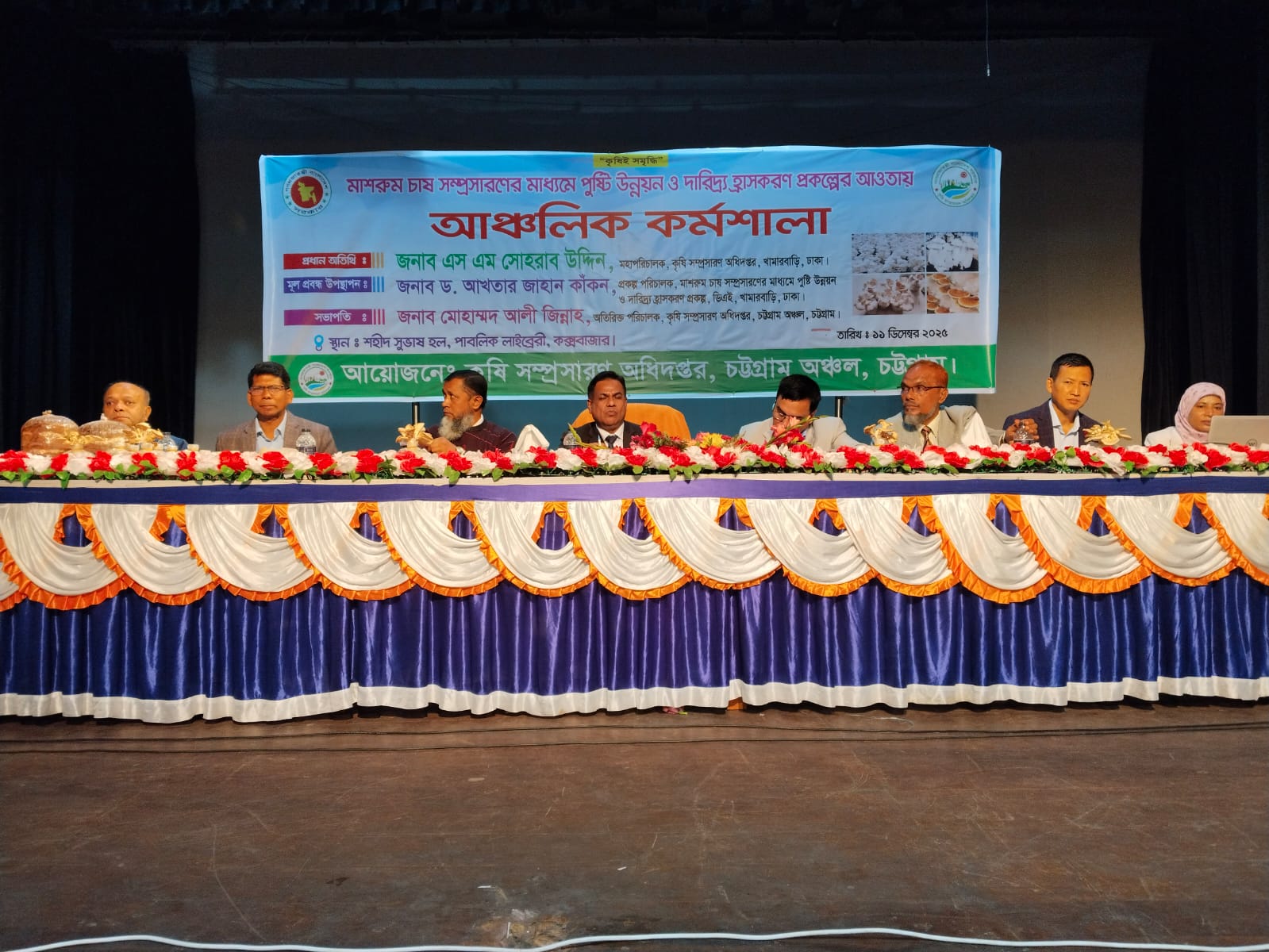 কৃষি সম্প্রসারণ অধিদপ্তর চট্টগ্রাম অঞ্চলের অতিরিক্ত পরিচালক মোহাম্মদ আলী জিন্নাহ এর সভাপতিত্বে কর্মশালায় প্রধান অতিথি হিসেবে উপস্থিত ছিলেন কৃষি সম্প্রসারণ অধিদপ্তর খামারবাড়ি ঢাকা এর মহাপরিচালক এস এম সোহারাব উদ্দিন।