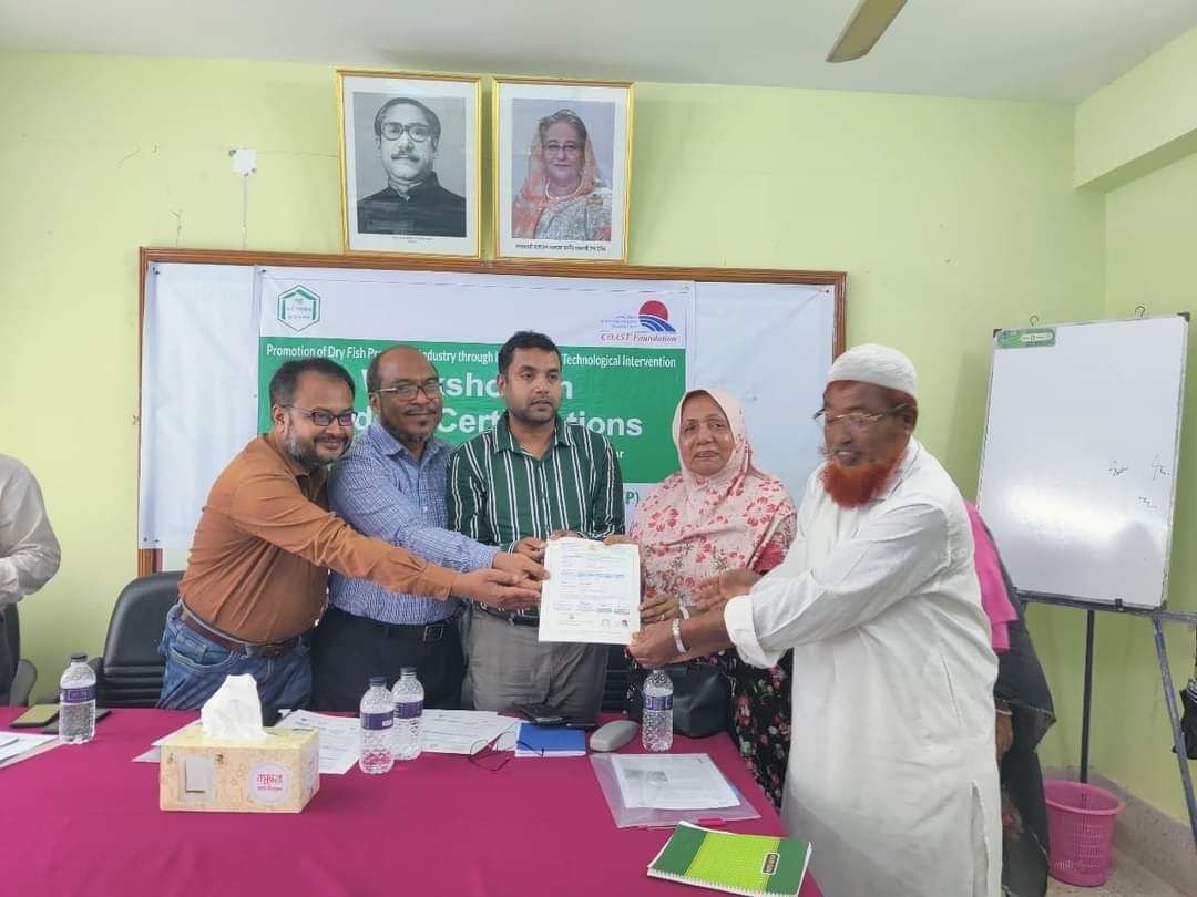 বিডি প্রতিবেদক : শুঁটকির নমুনা ল্যাব পরীক্ষার মাধ্যমে ২০জন উদ্যোক্তাদের মাঝে সার্টিফিকেট প্রদান করল কোস্ট ফাউন্ডেশন। পিকেএসএফ এর সহযোগিতায় পরিচালিত কোস্ট ফাউন্ডেশন এর সাসটেইনেবল এন্টারপ্রাইজ প্রজেক্ট (এসইপি) নিরাপদ শুঁটকি উদ্যোক্তাদের
