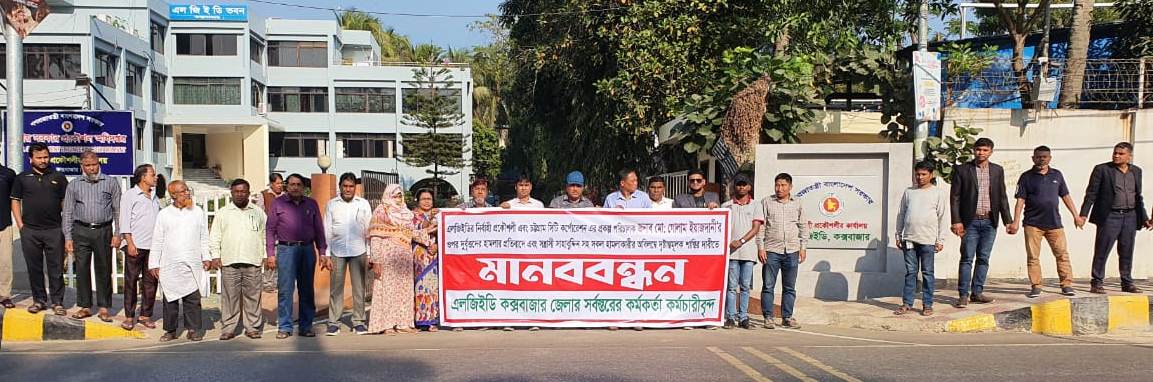 বিডি প্রতিবেদক : চট্টগ্রাম সিটি কর্পোরেশনের প্রকল্প পরিচালক ও নির্বাহী প্রকৌশলী মোঃ গোলাম ইয়াজদানীর উপর হামলার প্রতিবাদে কক্সবাজার এলজিইডির কর্মকর্তা কর্মচারীরা প্রতিবাদ সমাবেশ ও মানববন্ধন করেছে। প্রতিবাদ সমাবেশ থেকে এ