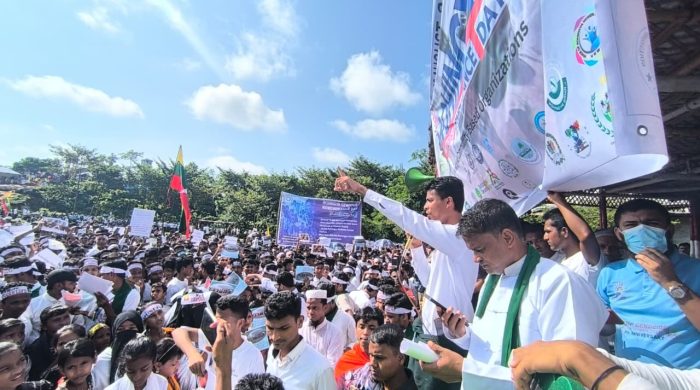 সাকলাইন আলিফ : বাংলাদেশে রোহিঙ্গা আগমনের ৮ বছর পুর্তি উপলক্ষে শরনার্থী শিবিরে গনহত্যা দিবস পালন করেছে রোহিঙ্গারা। এ উপলক্ষে ২৫ আগস্ট শরনার্থী শিবিরে মিছিল ও সমাবেশের আয়োজন করা হয়। দিনটিকে রোহিঙ্গারা কালো দিবস আখ্যা দিয়ে রোহিঙ্গা গণহত্যা দিবস হিসেবে পালন করে আসছে রোহিঙ্গা। নিরাপত্তা ও সম্মানের সাথে নাগরিক অধিকার নিয়ে স্বদেশে ফিরতে নানা দাবিতে রোহিঙ্গারা এ সমাবেশের আয়োজন করে। সোমবার সকাল ১০টার পর থেকে উখিয়া উপজেলার কুতুপালং বর্ধিত ৪ নম্বর ক্যাম্পে অবস্থিত ফুটবল মাঠে এবং ৯ নম্বর ক্যাম্পে বালুর মাঠে সমাবেশ করেছে তারা। সমাবেশে হাজার হাজার রোহিঙ্গা মিয়ানমারে গনহত্যা বন্ধ করো গনহত্যা বন্ধ করো, উই ওয়ান্ট জাস্টিস শ্লোগানে প্রকম্পিত করে। এর আগে এসব শ্লোগান দিয়ে আশপাশের ক্যাম্প থেকে সকাল থেকে রোহিঙ্গারা মিছিল সহকারে ফুটবল মাঠে জড়ো হতে শুরু করে। সমাবেশে পুরুষদের পাশাপাশি রোহিঙ্গা নারী, শিশুরাও যোগ দেন। পোস্টার, প্ল্যাকার্ডে রোহিঙ্গারা মিয়ানমারে ফিরে যাওয়ার দাবি তুলে ধরেন। রোহিঙ্গা ক্যাম্পের খোলা মাঠ। জড়ো হয়েছেন শত শত রোহিঙ্গা। হাতে পোস্টার-প্ল্যাকার্ড, কণ্ঠে ফিরে যাওয়ার আকুতি। আজ থেকে আট বছর আগে রাখাইনে ভয়াবহ গণহত্যার শিকার হয়ে বাংলাদেশে আশ্রয় নিয়েছিলো লাখ লাখ রোহিঙ্গা। সেই স্মৃতিবহ ২৫ আগস্টকেই তারা পালন করছে ‘রোহিঙ্গা গণহত্যা দিবস’ হিসেবে। কক্সবাজারের উখিয়া ও টেকনাফের রোহিঙ্গা ক্যাম্পগুলোতে সকাল থেকেই পালিত হয় নানা কর্মসূচি। নিহত স্বজনদের স্মরণ, সমাবেশে পূর্ণ হয়ে ওঠে ক্যাম্প। জমায়েত মাঠ ছাড়িয়ে পাহাড়েও। এসময় স্লোগানে উচ্চারিত হয় একটাই দাবি— নিরাপদে, সম্মানের সাথে, নাগরিক অধিকার নিয়ে মিয়ানমারে প্রত্যাবাসন। সাধারণ রোহিঙ্গারা জানিয়েছেন, আট বছর কেটে গেলেও একজন রোহিঙ্গাকেও ফিরিয়ে নেয়নি মিয়ানমার। উল্টো প্রত্যাবাসন পরিস্থিতি আরও জটিল করে তুলেছে। রাখাইন রাজ্যের নিয়ন্ত্রণ এখন সশস্ত্র গোষ্ঠী আরাকান আর্মির হাতে। গত এক বছরে নতুন করে প্রায় দেড় লাখ রোহিঙ্গা অনুপ্রবেশ করেছে বাংলাদেশে। এদিকে আন্তর্জাতিক সহায়তাও কমছে দিন দিন। ফলে সংকটে পড়েছে শিক্ষা, স্বাস্থ্য ও খাদ্য কার্যক্রম। এতে বেড়েছে উদ্বেগ–উৎকণ্ঠা। সমাবেশে রোহিঙ্গা কমিউনিটি নেতারা বলেছেন ২০১৭ সালের ২৫ আগস্ট মিয়ানমারের সামরিক জান্তার গনহত্যার মুখে লাখ লাখ রোহিঙ্গা বাংলাদেশে পালিয়ে এসে আশ্রয় নেয়। সামরিক জান্তা রোহিঙ্গাদের বাড়ি ঘর পুড়িয়ে দিয়েছে। তারা আরাকানে জাতিগত নিধন চালিয়ে গেছে। আট বছর পরও অনিশ্চিত ভবিষ্যৎ, কমতে থাকা সহায়তা আর ভিন দেশে অনেকটা বন্দি জীবন; এসব নিয়েই কেটে যাচ্ছে রোহিঙ্গাদের দিন। অন্যদিকে রোহিঙ্গাদ
