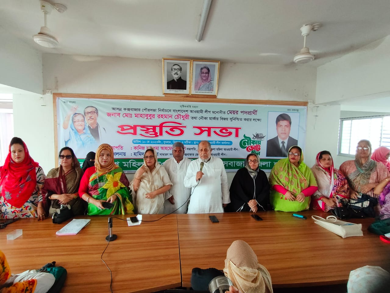 বিডি প্রতিবেদক : আগামি ১২ জুন অনুষ্ঠিততব্য কক্সবাজার পৌরসভার নির্বাচনে আওয়ামীলীগ মনোনীত নৌকা প্রতিকের প্রার্থী মো. মাহাবুবুর রহমান চৌধুরীকে মেয়র বিজয় করতে প্রস্তুতি সভা করেছে কক্সবাজার জেলা মহিলা আওয়ামীলীগ। বুধবার